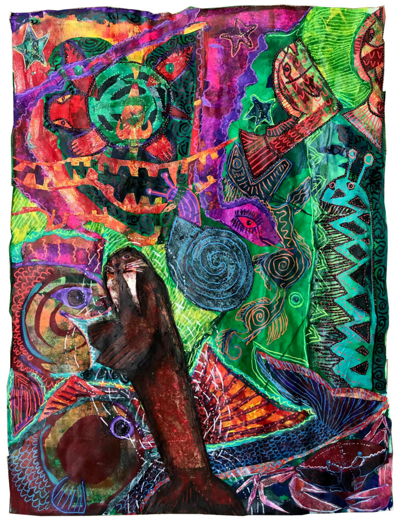 Final, 18″ x 24″, Acrylic & Collage on Paper, March 2026 This piece is about a warm-blooded creature seemingly surrounded by many cold-blooded creatures. The Walrus floating in the Ocean. It is about dimensions and things not appearing as they seem. We do not know how much space lies between all these creatures in the […]
